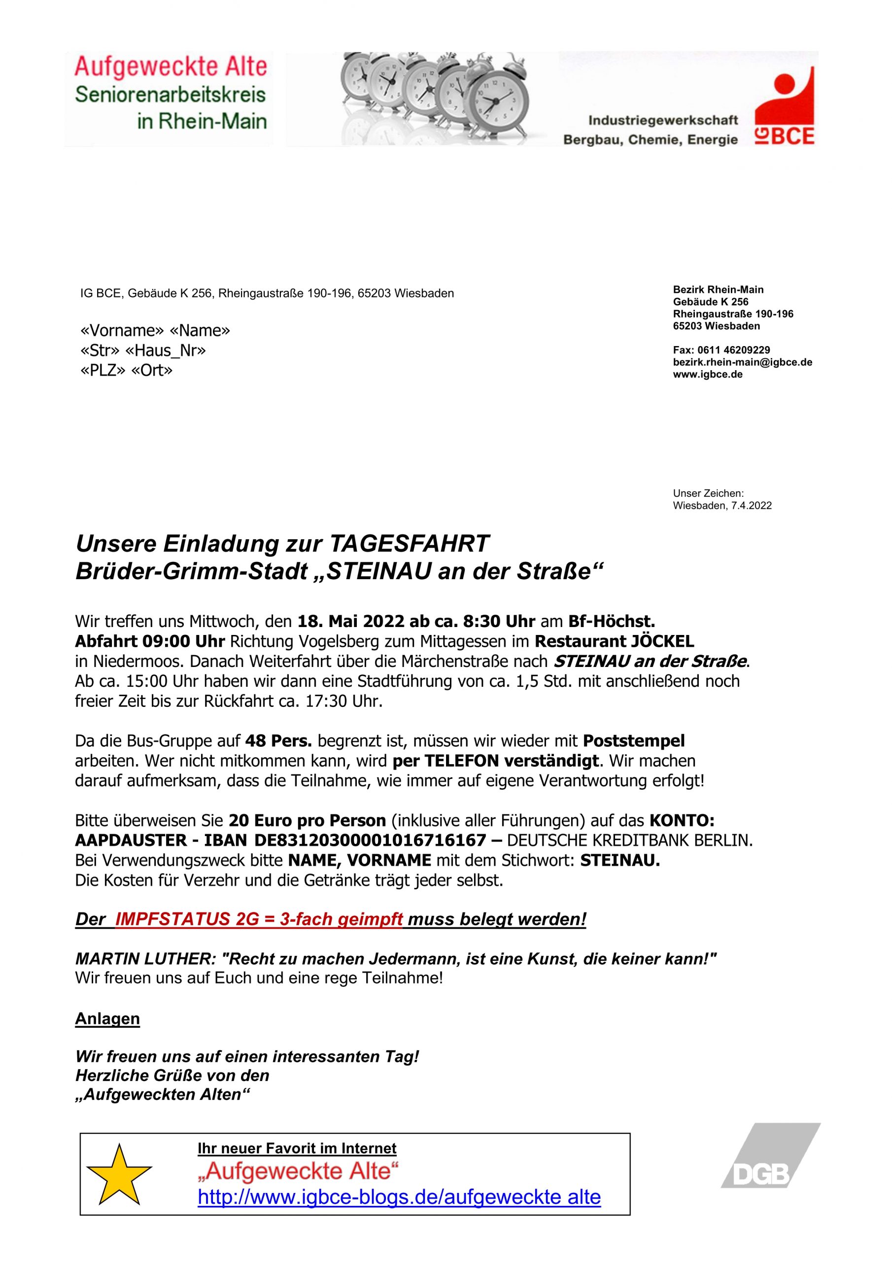 MAI 2022 Tagefahrt zur Brüder-Grimm-Stadt